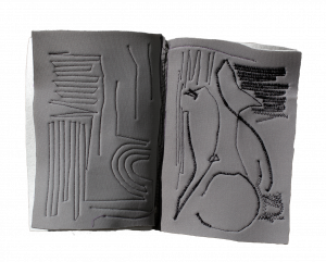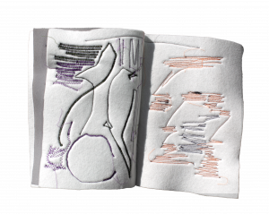 Das textile Material des Skizzenbuchs erweitert dessen Potenzial um zahlreiche Aspekte: Es entsteht eine Reliefstruktur zwischen Linie und Fläche, die Rückseite wird unbewusst mitgezeichnet und in Form von losen Fäden wächst der Stich über das »Papier« hinaus und bleibt beweglich.